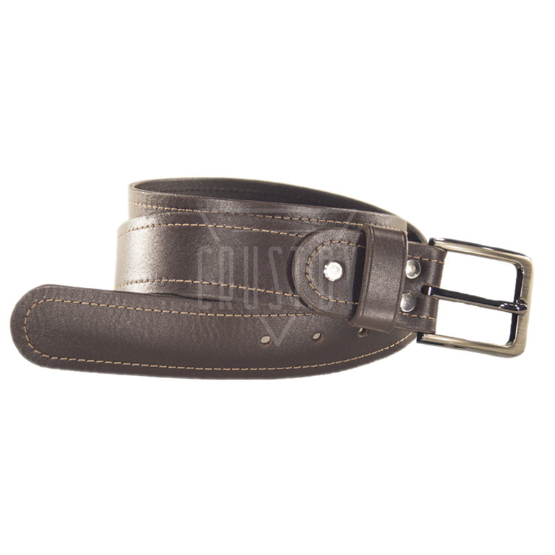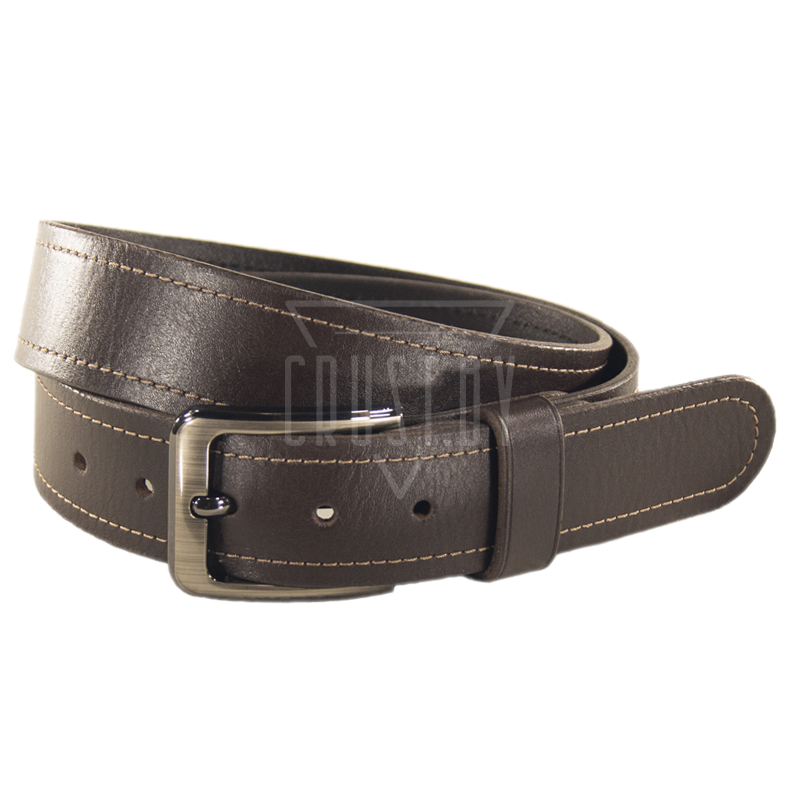 Кожаный натуральный ремень серии Стандарт коричневого цвета. Для изготовления используется кожа комбинированного дубления и пряжка из сплава ZAMAK (ЦАМ) с прочным декоративным покрытием. Структура ремня гладкая, нижняя поверхность (бахтарма) максимально строганная и ровная. Ремень пропитан водоотталкивающими составами, плотный и не жёсткий.