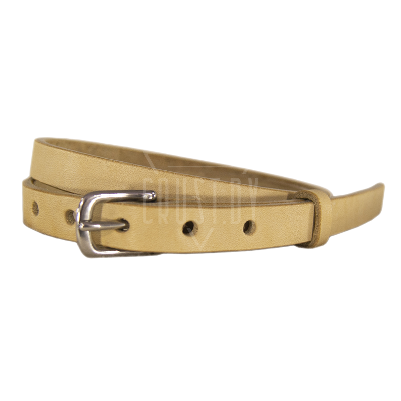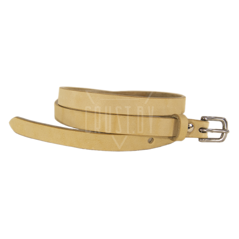 Кожаный ремень-пояс серии Классик бежевого цвета. Для изготовления используется кожа комбинированного дубления и пряжка из нержавеющей стали. Структура ремня гладкая, нижняя поверхность (бахтарма) максимально строганная и ровная. Ремень пропитан водоотталкивающими составами. Отлично подойдёт для летних лёгких образов.